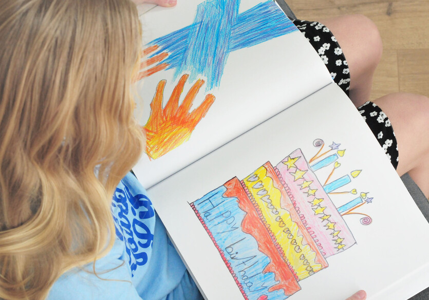 “Our book arrived today and it is really lovely, thank you. Our 4 year old daughter loved leafing through it and talking about all her artwork. I can't throw anything my kids create away, and it would have all just sat in boxes for years, never being looked at. This way we can all enjoy it easily for years to come. Super easy process too."