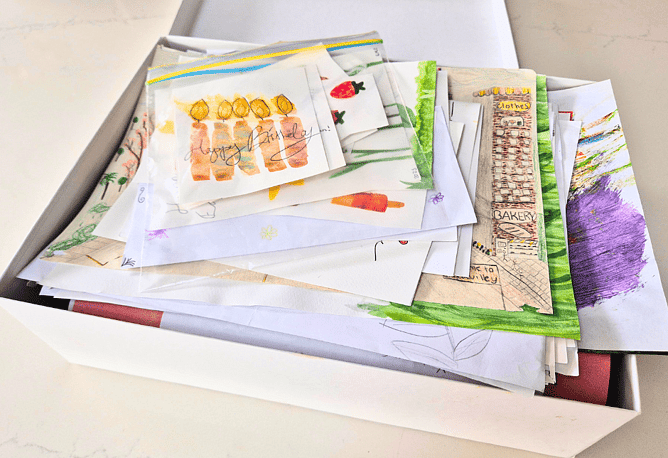 At the end of each term or year, look through the box and choose the pieces that feel most meaningful.